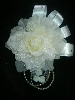 白薔薇とサテンリボンのコサージュ