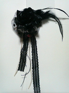 ・黒薔薇とレース使いのリボンのコサージュ